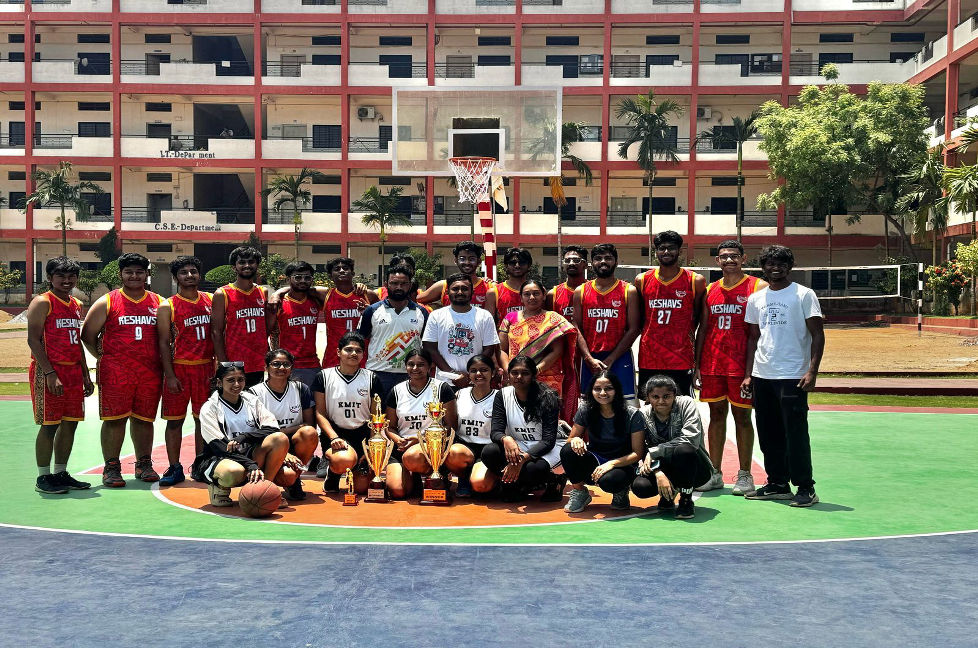 A basketball court matching professional standards has been built next to the football field. We are very proud to state that the college Basketball team participated in tournaments conducted by Sreenidhi Ashwatthams from 17-22 November 2025. Another crowning glory is that we had organized inter college basketball tournament for all engineering colleges at KMIT campus from 21 & 28 August 2025.